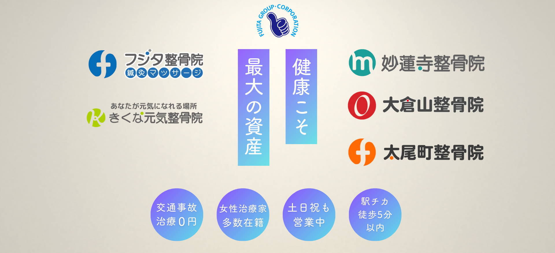 フジタグループ・フジタコーポレーションが運営する整骨院・鍼灸院の施術は、伝統的な東洋医学と現代の医療知識を融合し、患者様の自然治癒力を引き出す重要な役割を担っています。貴院では、確かな技術と細やかなカウンセリングを通じて、一人ひとりの症状に応じた最適なケアを提供されており、多くの患者様から信頼を集めていることを実感します